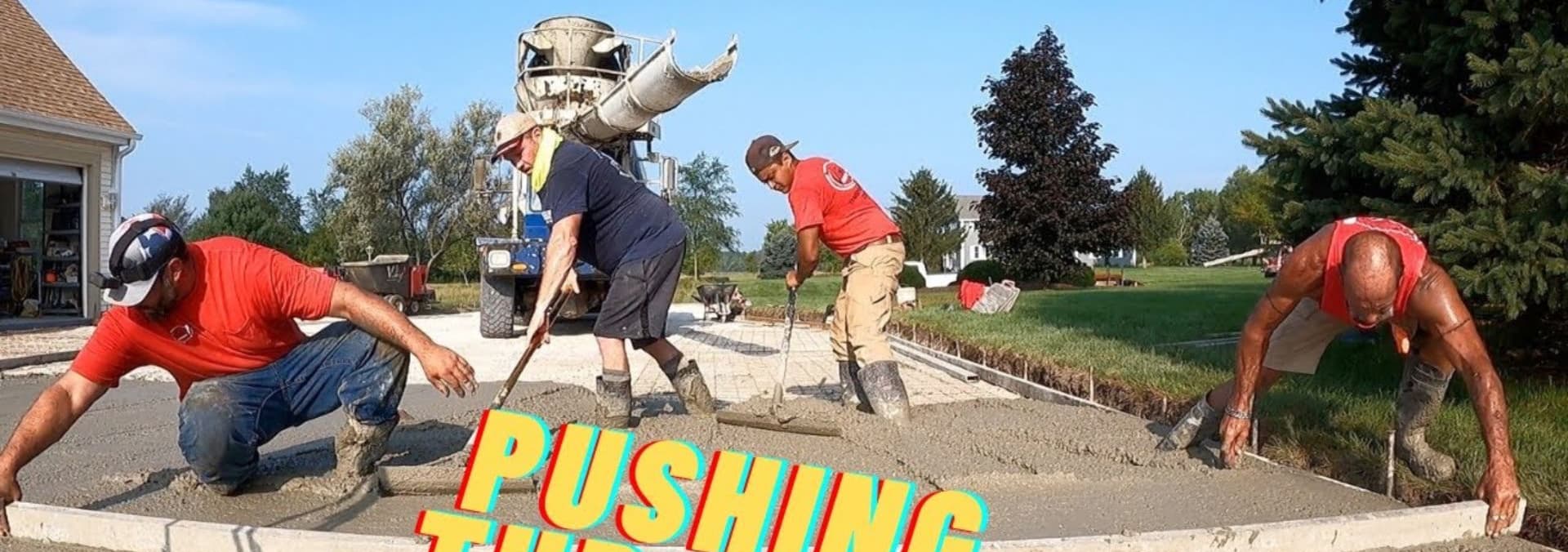 Join the concrete crew as we pour and finish a big driveway on a Friday. Sickness is still plaguing the crew, but we need to get the work done anyway.