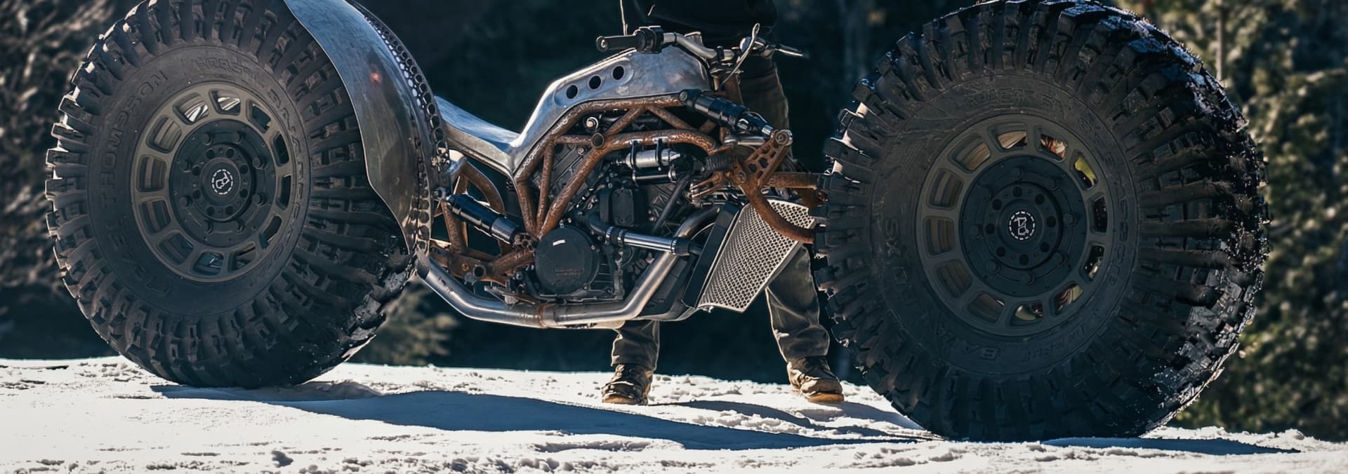 The 46" Mud terrain tire motorcycle has made it a long way! We rebuild the steering this time with cables, installed a Rottweiler Performance air intake and finished the exhaust!