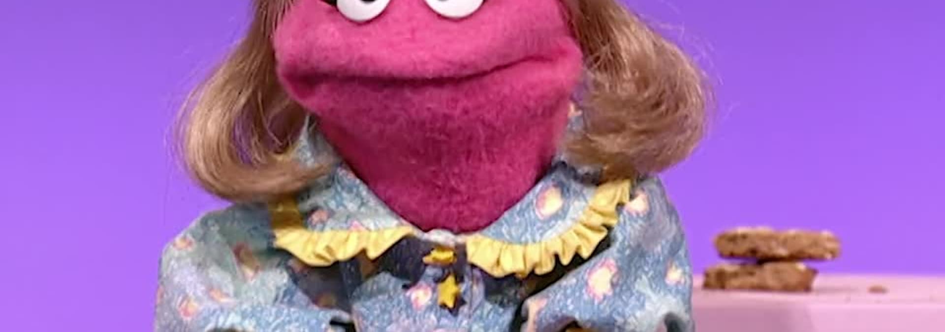 Oscar and Grundgetta are reading “The Tale of Sleeping Grouchy” and Slimey, Telly and Elmo join them.