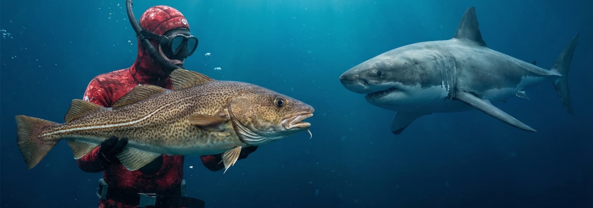 Heart-pounding spearfishing moment off the Oregon Coast! A massive great white shark appears out of the deep while diving. Pure adrenaline and raw ocean power!