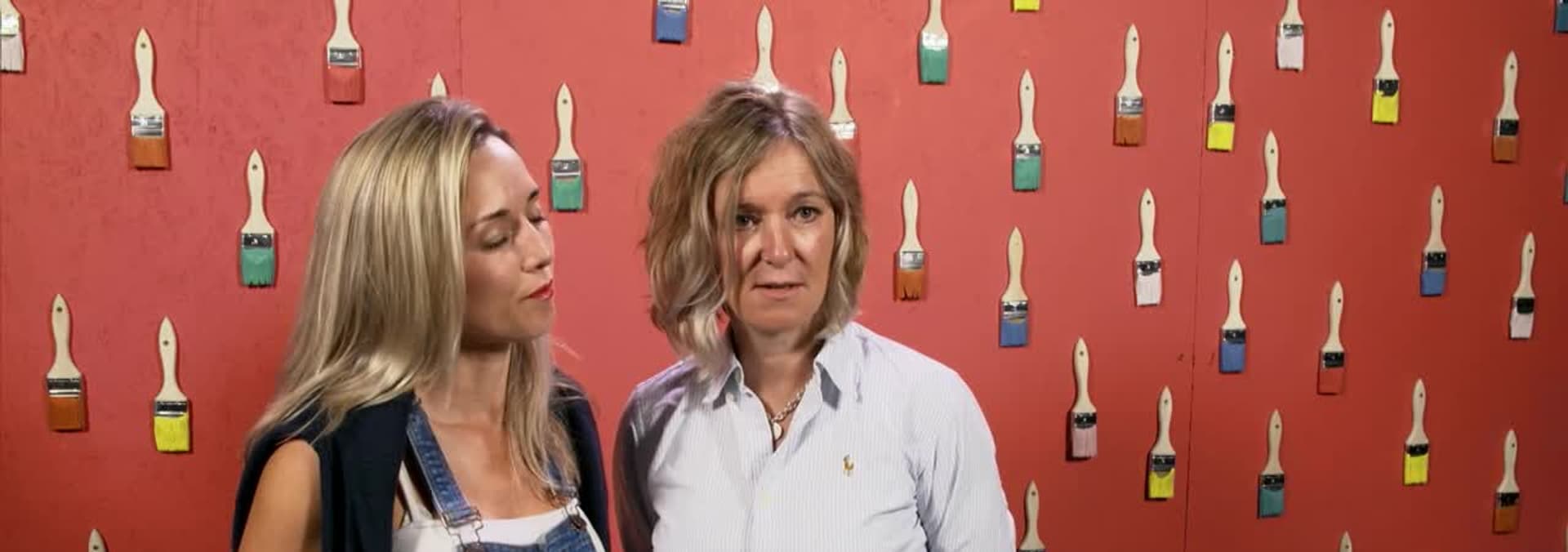 The teams design makeovers for different rooms. Mark and Kelly make modern art from retro materials.