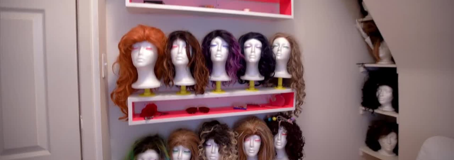 Danie and Alexandra help Drag Queen Selena Vyle (Nicky) organize her large wig collection.
