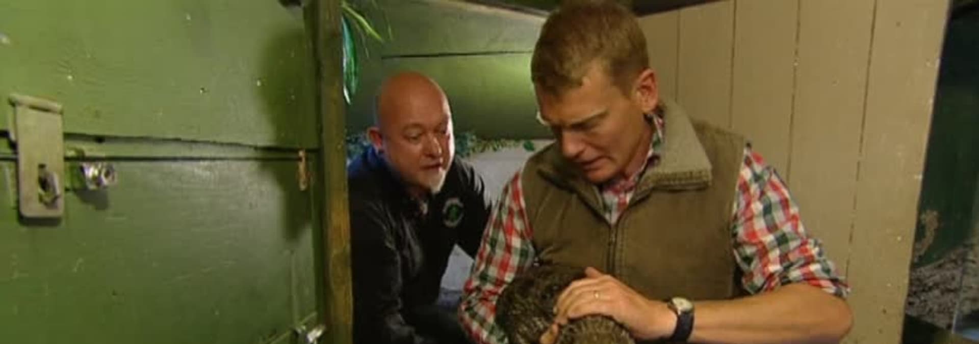 Presenter Tom Heap helps a temperamental Croc move home and there's a late night stake out to try catch a snared badger.