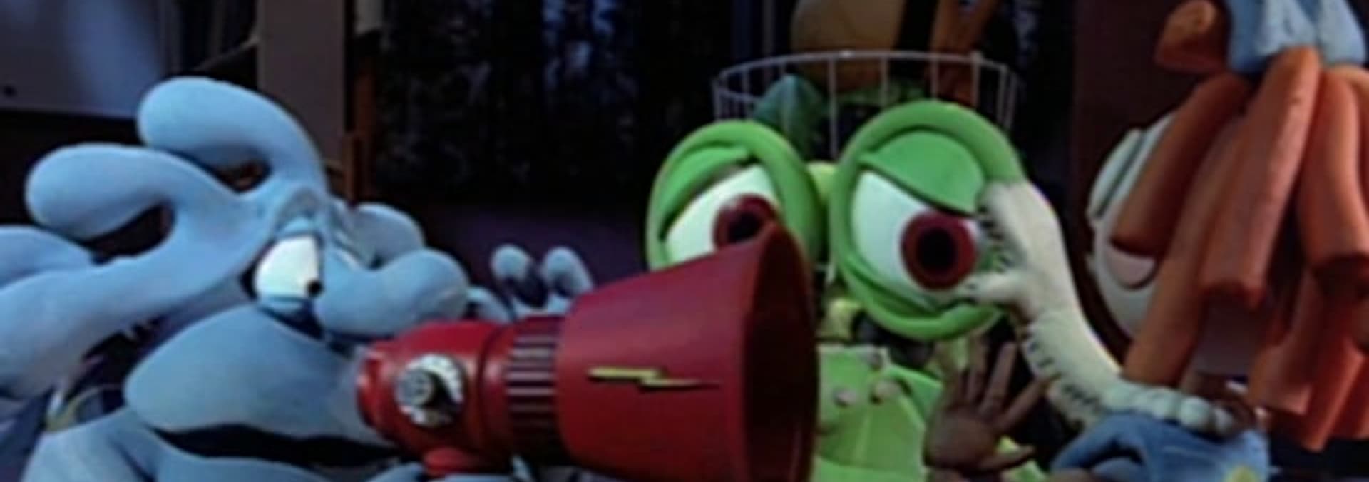 Destructo is accidentally programmed to silence anyone making Too Much Noise.//Squishington has the cleaning jones. He is gonna clean every single germ out of his bathroom, if its the last thing he does. And it just might be. When he and Bumpy shrink themselves down to the microscopic level to disinfect the germs mano-o-germo, things get pretty rough. A cute girl germ gets the hots for Squish, and he must fight off her amorous advances as well as the father of all germs, the giant killer amoeba, or he and Bumpy will be nothing but virus droppings.