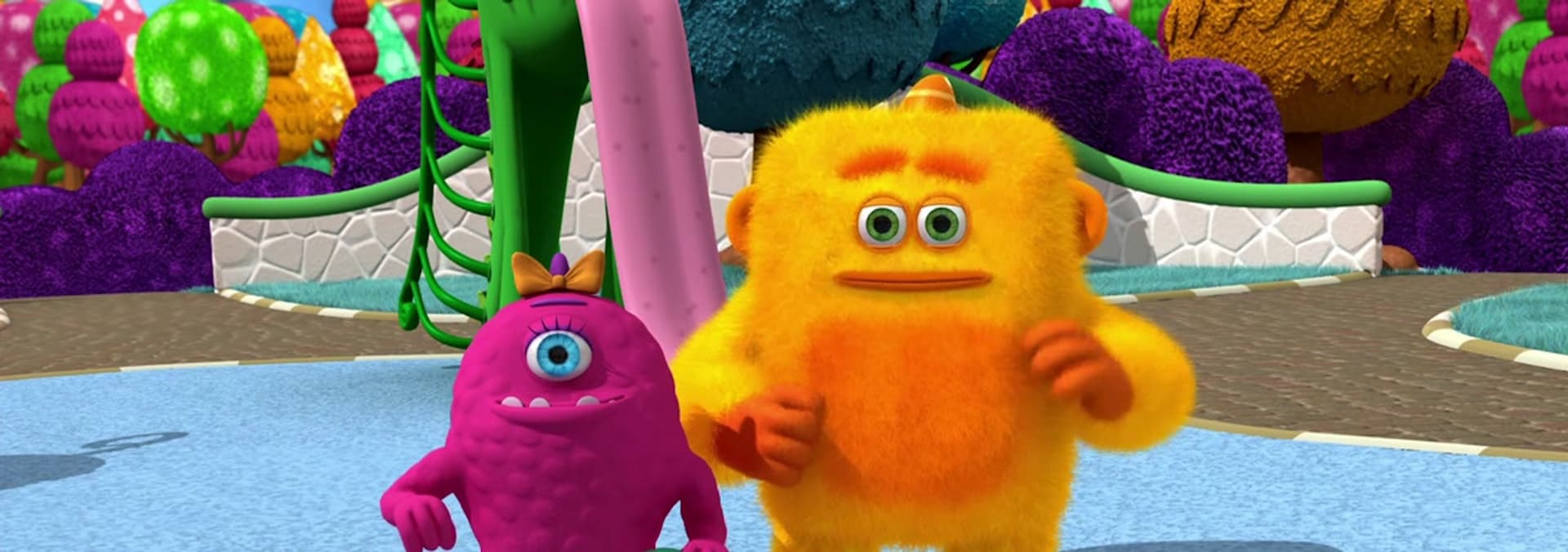 Even Stevie and Even Evie need the Monster Math Squads help. These twins like everything to be EVEN. The Squad drop by and help show the twins how to play a game of bowling and keep all the pins even as they go! With a little math, the Squad keep everything even. It comes down to the last shot when the twins have to each knock down one pin at the exact same time!