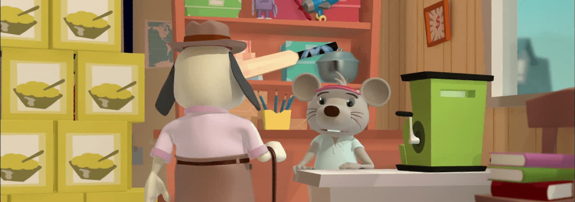 When Rat accidentally ends up with lots of boxes of porridge, he knows there's only one way to sell them;- he must play a trick!