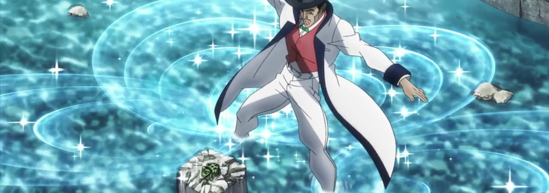 Trading blows with Santviento, Joseph employs his usual wit, but the jokes fall as flat as the Hamon. Stroheim surprises as he sheds light on the lethal Pillar Men, leaving Joseph hanging in more ways than one.