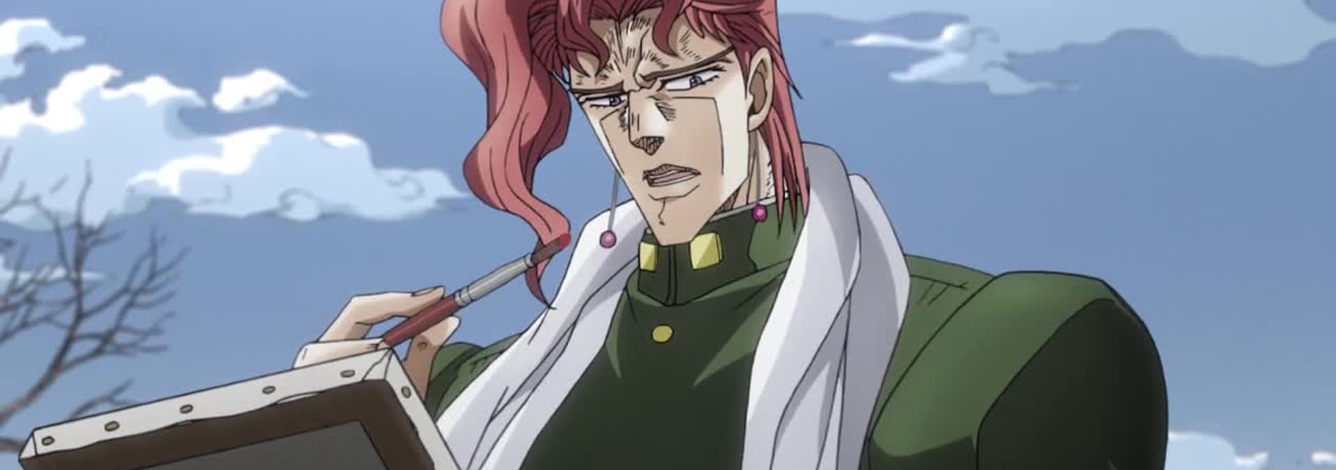 Jotaro returns to his normal life while keeping his "Stand" power a secret. But on the way to school one day he meets a new transfer student named Noriaki Kakyoin and sustains a strange injury.