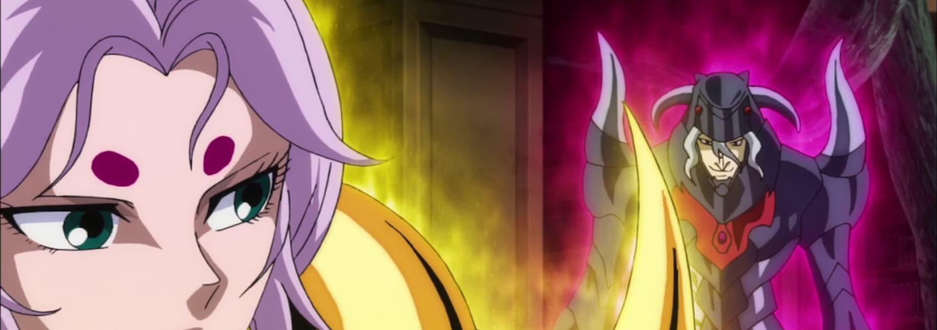 A showdown of Gold Saints vs. God Warriors in the 7 chambers starts at last! Taurus Aldebaran faces God Warrior Hercules yet again. Meanwhile, in the chamber of ice, Gold Saints Shura and Camus engage in an ultimate battle of God Cloth vs. God Cloth.