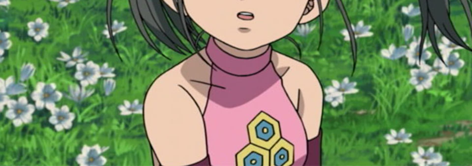 Shu and his friends arrive in Korin. There, they meet a girl who is dressed like the late Homeron. The girl's name is Sui.