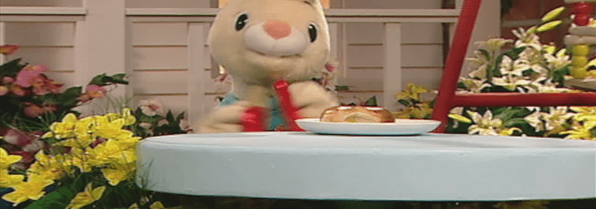 Join the lovable Harry the Bunny as he introduces new words and concepts such as the number one, the shape of a circle and the color green.
