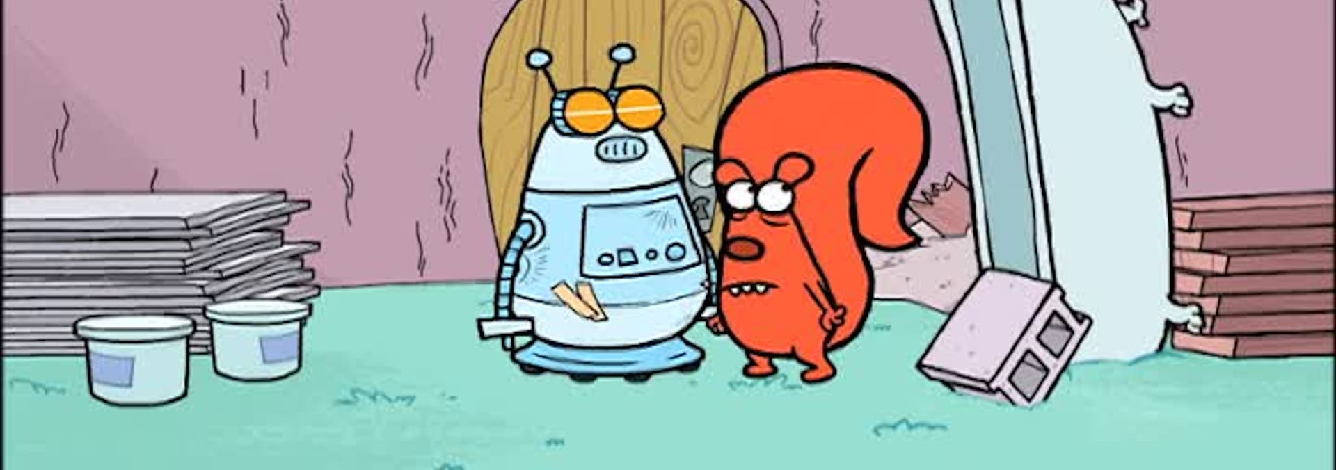 Buddy sends away for a robot helper to assist around the house. Knowing that Ed’s helpfulness often causes more harm than help, Buddy buys a robot helper programmed to take over Ed's chores, but after suffering some accidental damage (because of Ed), the robot attempts to replace Ed altogether. / Ed tries to help Buddy get some rest before a big day gathering nuts. Tomorrow is the biggest day of the nut-gathering year and, knowing that Buddy needs to get a good night's sleep, Ed does his best to help keep things extra quiet, then winds up keeping Buddy awake all night long.
