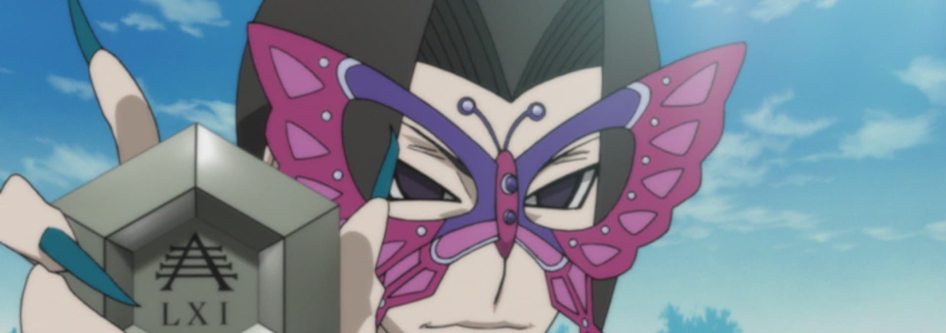 Kazuki, Tokiko, and Gota head toward the Newton Apple Academy for Girls, an all-girl boarding school where the black kakugane was originally located. Warrior Chief Hiwatari and his re-extermination squad are pursuing Kazuki but are stopped by Papillon.