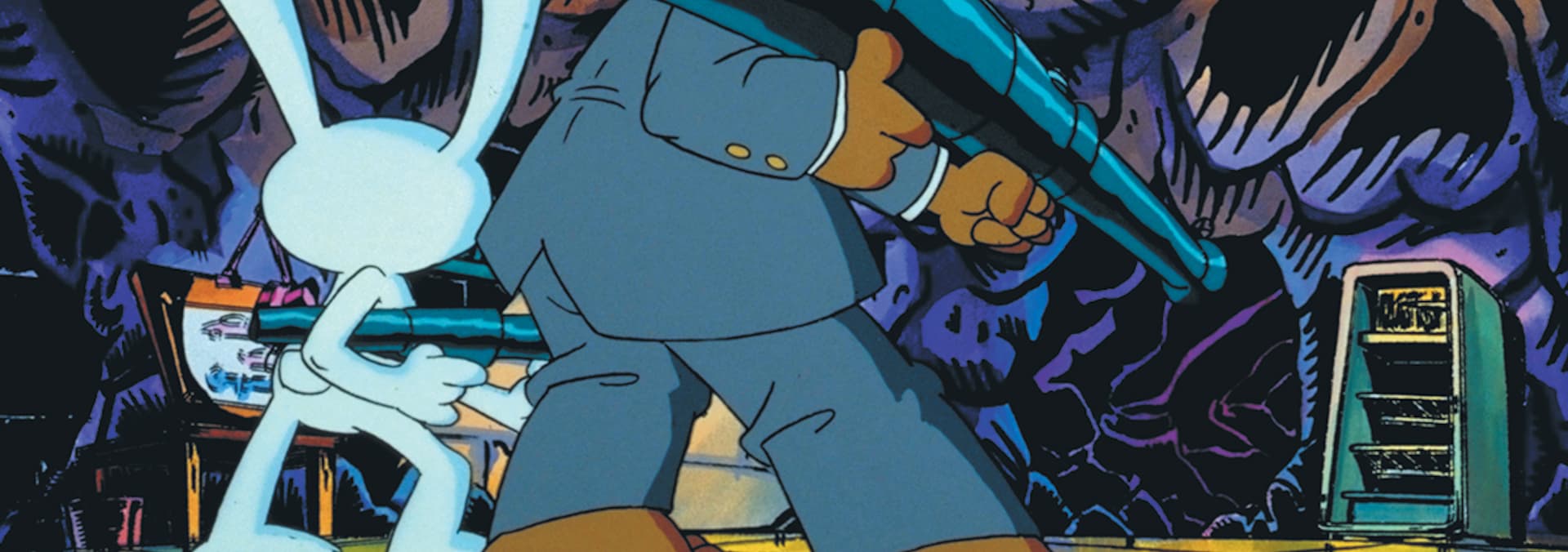 Sam and Max are on a dangerous mission. / Max has a watch that can move through time.