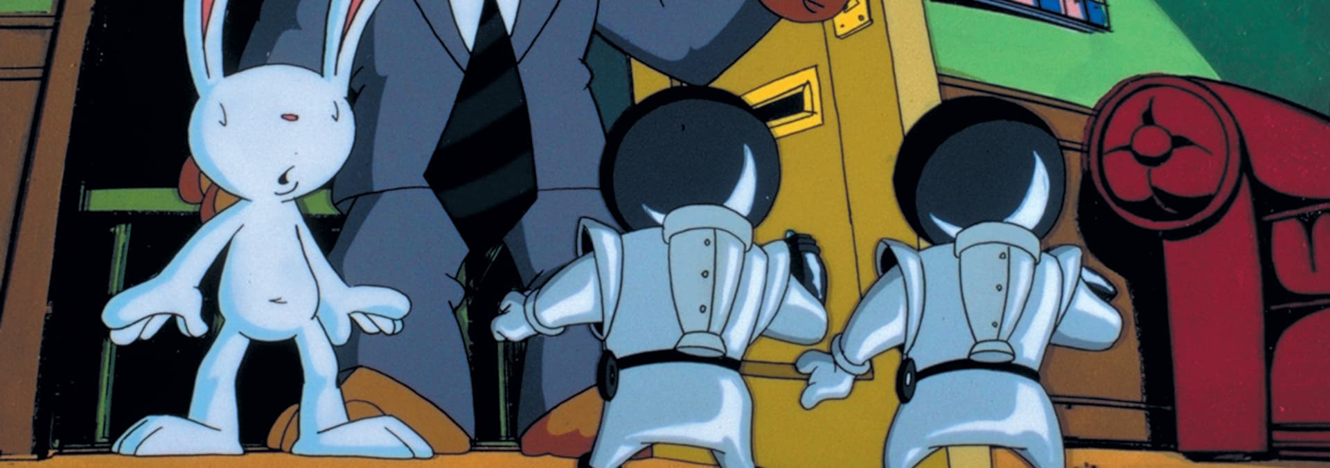 Sam and Max are on a dangerous mission. / Max has a watch that can move through time.