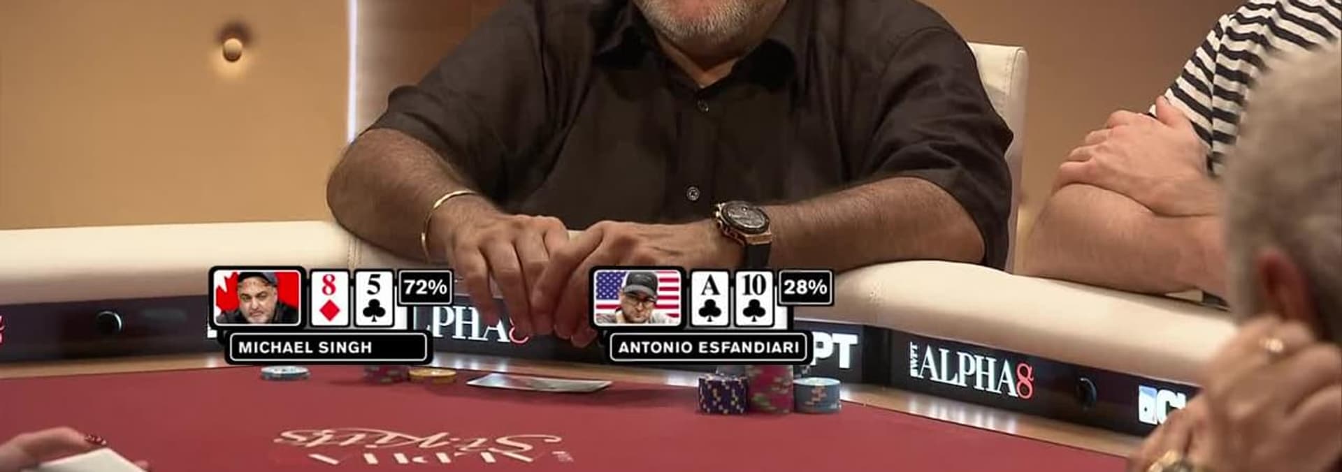 Olivier Busquet commands the chip lead in the $100,000 buy-in WPT Alpha8 St. Kitts. Fellow professionals Antonio Esfandiari, Jason Mercier, and Dan Colman are hot on his heels, while Houston businesswomen Kathy Lehne buys in, becoming the first woman to participate in a WPT Alpha8 event.