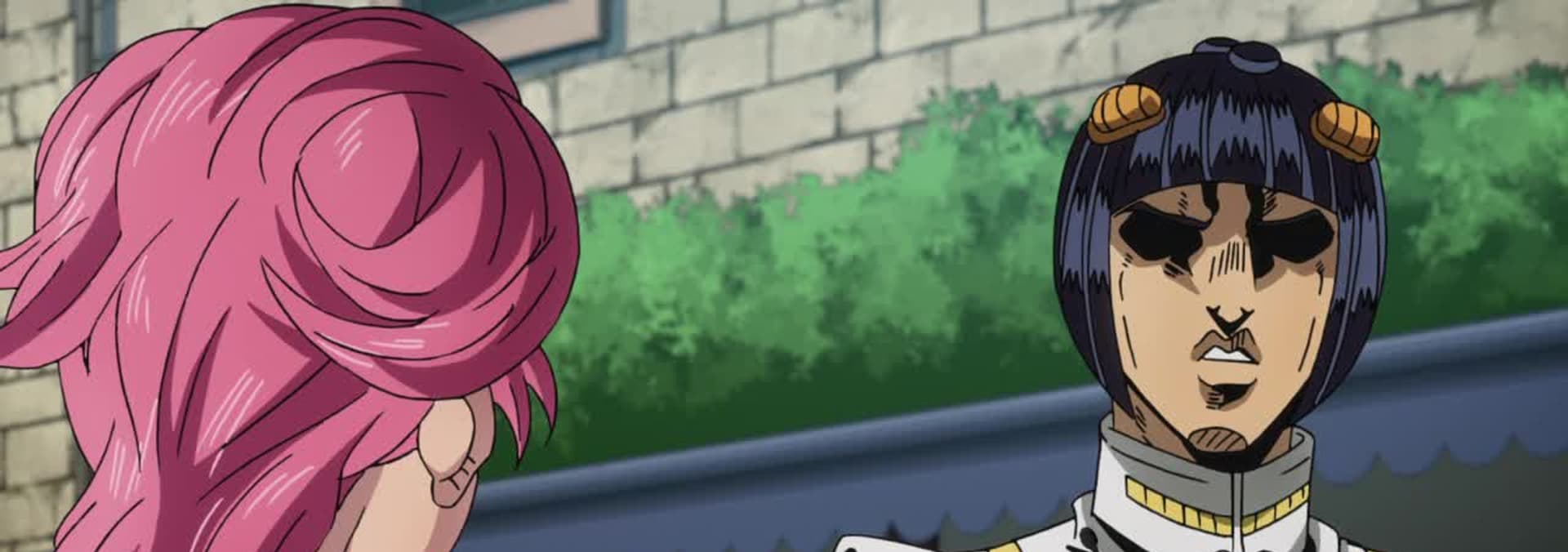 Bruno and team, now self-chosen traitors, learn from Trish during a moment of calm at a Venetian cafe a trip to Sardegna is vital. Chaos, then, erupts as Narancia loses his tongue and ability to speak the truth after spotting a shark in his soup.
