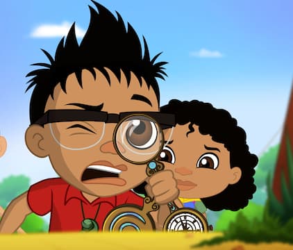When Burpee gets sore legs from dancing with Croakette, Darwin and Newts help by learning how to catch bugs for his lunch. All the while also observing that the sun casts shadows which help you tell the time of day.