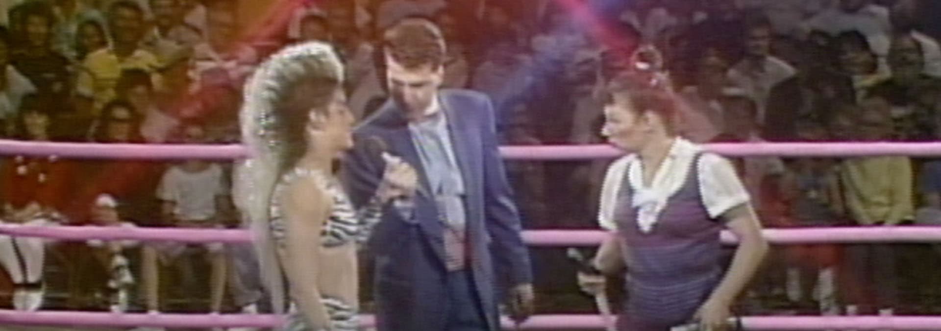 The Ladies deal with the organization's changes in management. Tonight, Tiffany Mellon clashes with Godiva in a duel, and Babe the Farmer's Daughter and Tulsa take on Bad Girls Hollywood and MTV. The Arena hosts some grueling arm-wrestling matches tonight, with a showdown boiling between Jackie Stallone and Aunt Kitty. Hoping to defend her title, Ninotchka battles against Sally the Farmer's daughter.