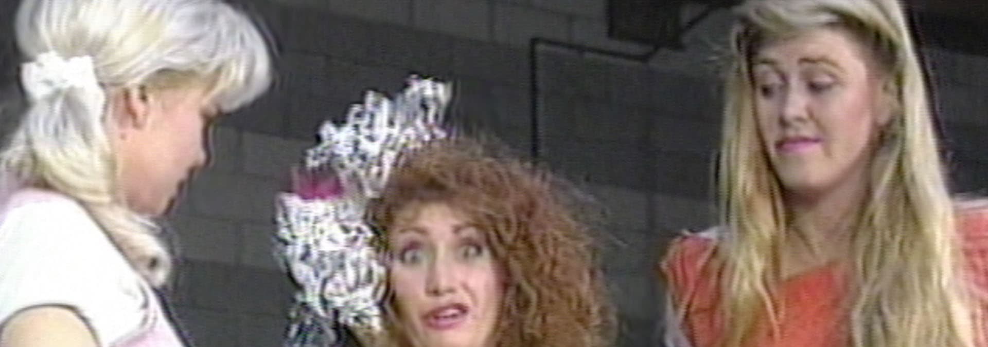 Cheerleading sensation and newcomer Vicky Victory hopes to snag the title from Ninotchka in tonight's main event. Sunny the California Girl fights Daisy and Gremlina, and Mt. Fiji erupts upon Beastie and Habana, with no referee present to curb the chaos. Roxy Astor evades Dementia's axe, and the Country Girls Sally and Babe team up against Godiva and Hollywood.