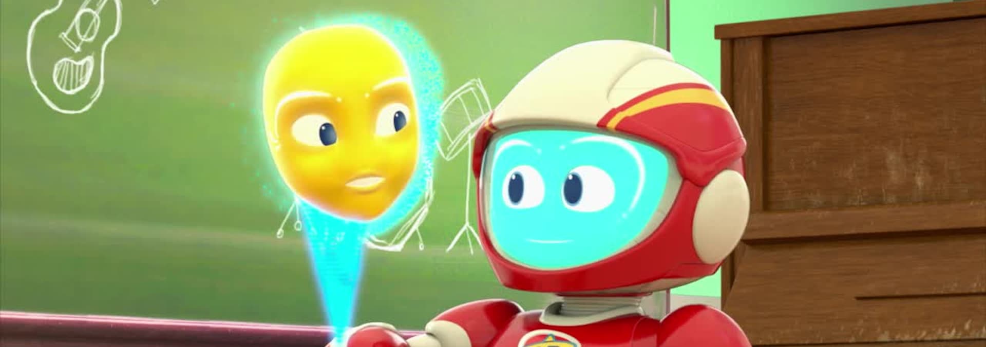 Roger and the bots create a basketball-playing bot for an Earth friend to practice with. But the bot is so super skilled, it won't stop dribbling and dunking until it's defeated at its own game! // Roger rallies the bots to clean up a girl's art project. But when their efforts accidentally bring it to life, there's a papier mache shark on the loose!