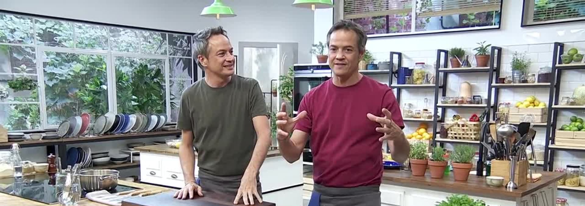 Hoy los gemelos Torres reinventan recetas de toda la vida. Cocinan: "Fideos a la cazuela" y "Buñuelos rellenos de tofe de plátano".