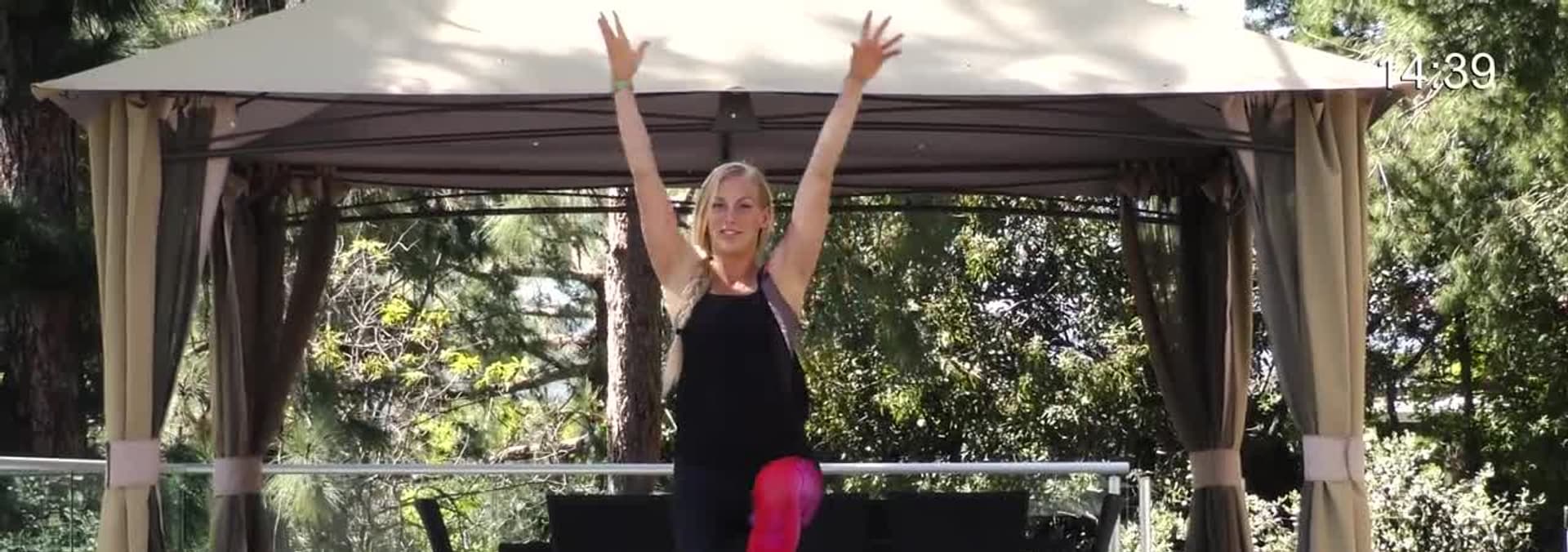 A 30 minute cardio and strength workout that will help you burn major calories and tone up with fun, high energy exercises. Trampoline exercise is a great way to improve balance and coordination, and is a lower impact cardio workout. This routine can also be done without a trampoline.