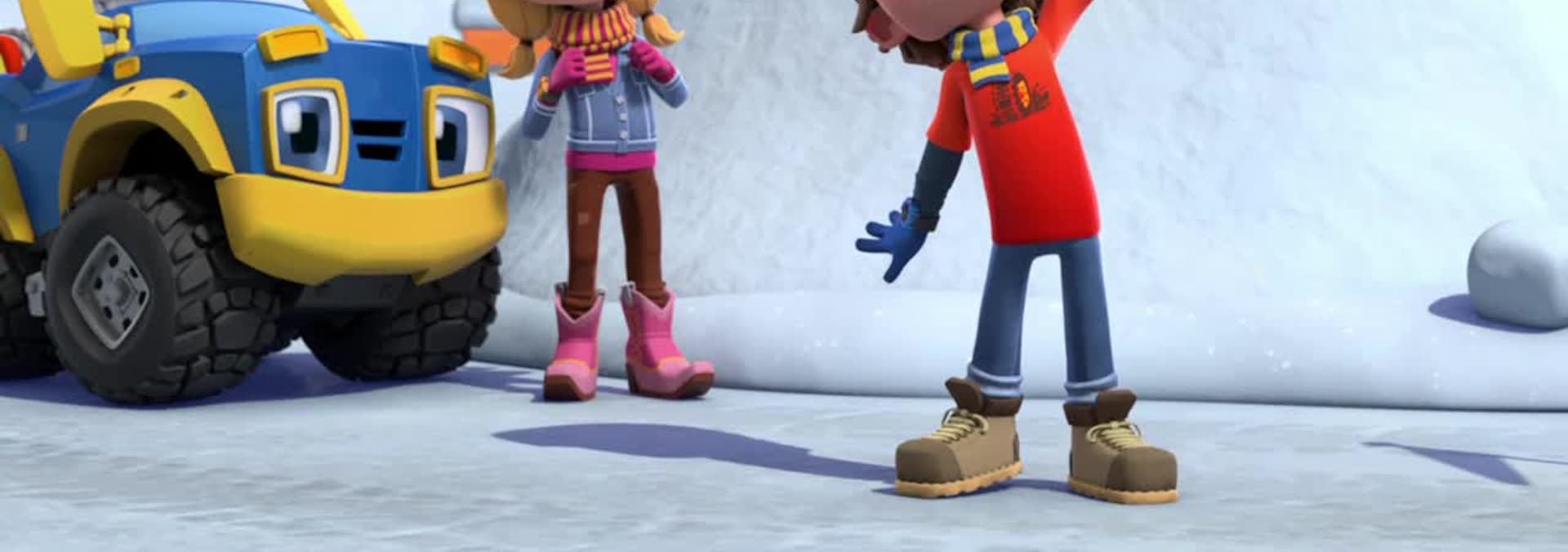 Rev and Rumble teach Bentley the pup to play Hide & Seek! When Bentley gets too good at hiding, Rumble uses Bentley’s instincts help them find him. // A big storm hits on Christmas Eve—what if Santa can’t make it? So Rev and the kids deliver their own toys to all the kids in town—just in case!