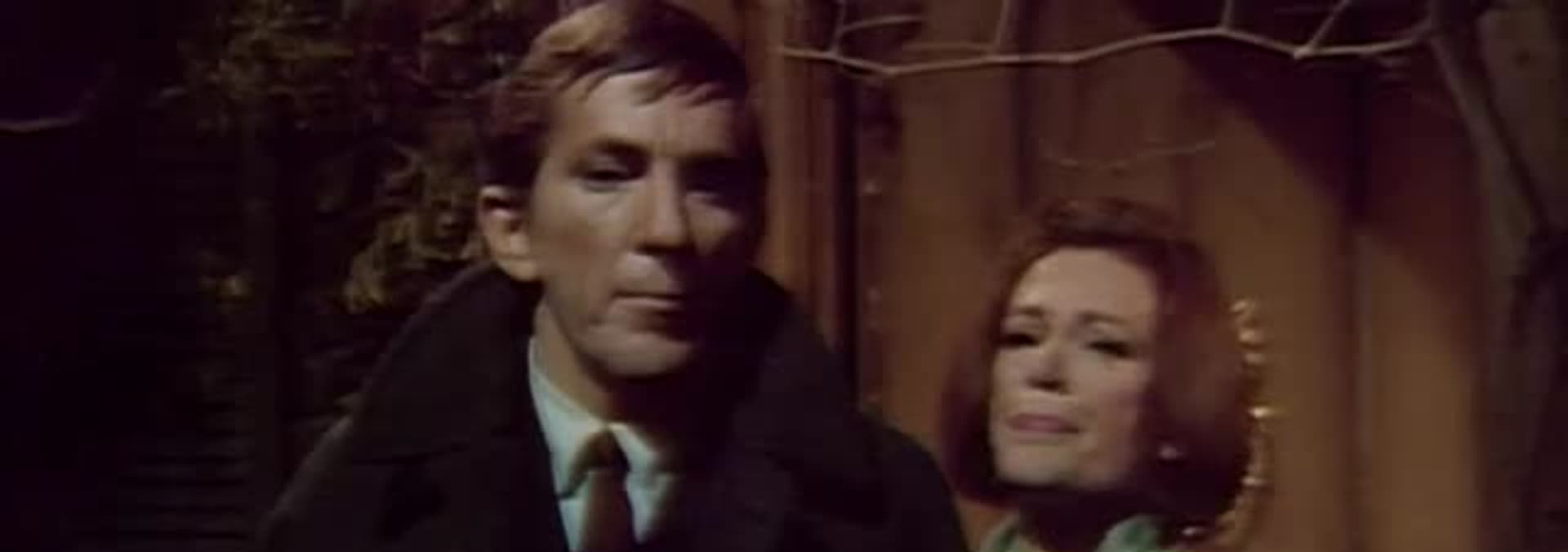 Sarah appears to David inside the mausoleum. Terrified, he runs into the arms of Barnabas outside.