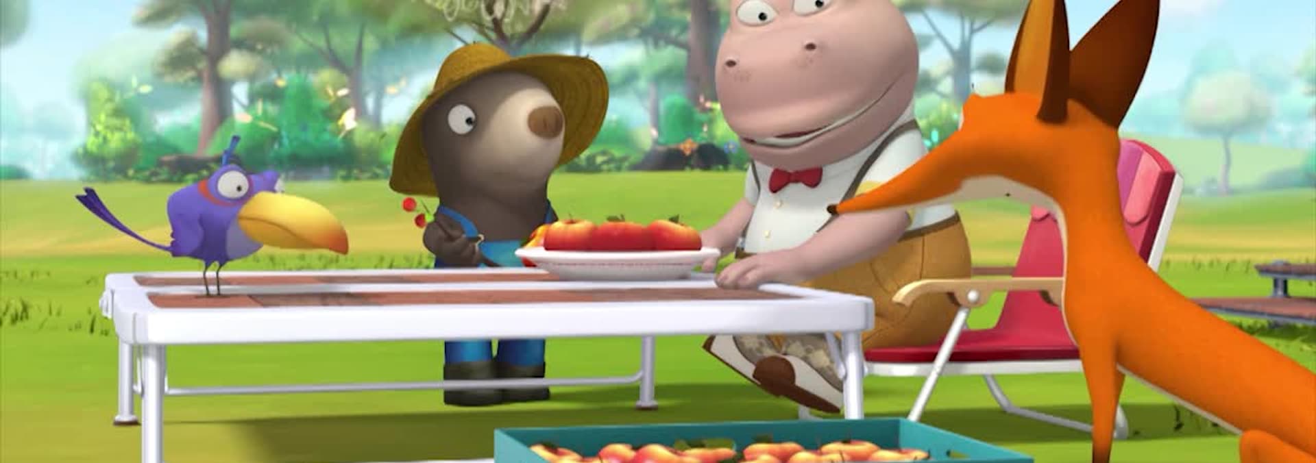 Rabby feels the powerful restoration of the tree while repairing the branches broken by the typhoon. Meanwhile, Baron and Pusil wash apples to make apple pie. Later, Rabby plants an apple tree to discover how apples can vary in size.
