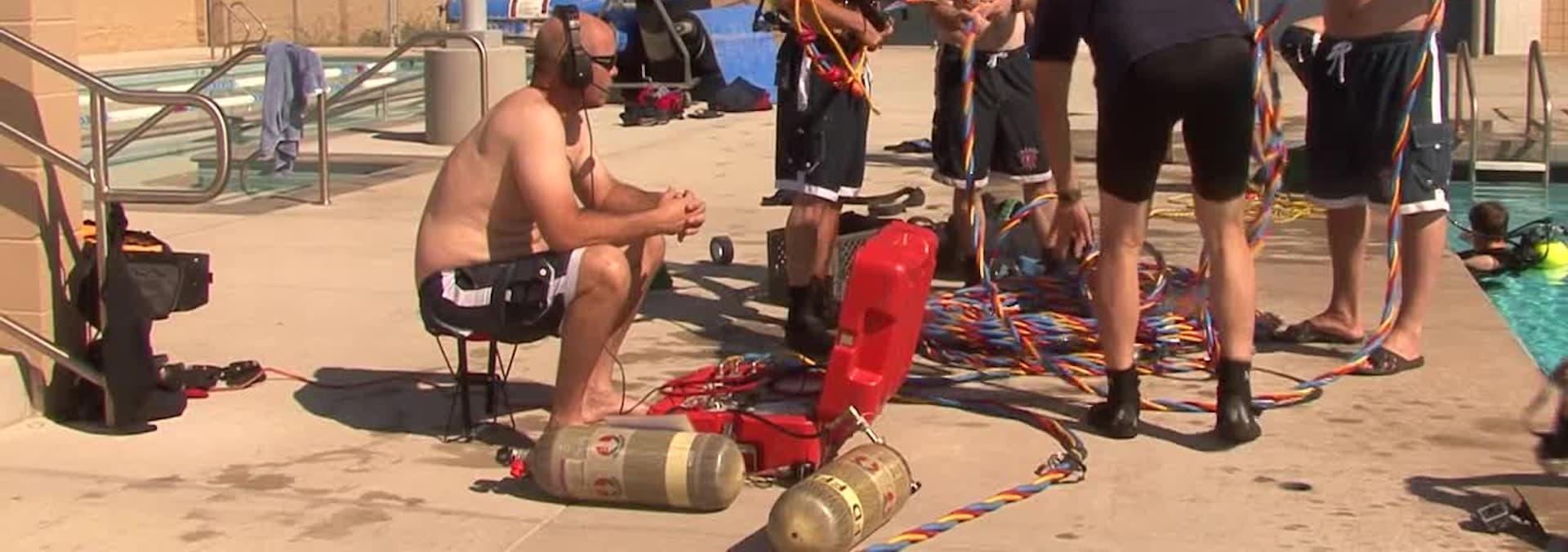 Station 4 "C" Shift. The four man crew staffs the Tower Ladder Truck, The USAR Rig that is used for Water Rescue; The 48 hour shift starts out with a the team going over the equipment necessary for finding victims of an earthquake that may be stuck under the rubble. The shift goes shopping for chow for the next 48 hours. As busy as this station is, they still find time to exercise. A call comes in, something, possibly a wrapped body, has been found in the canal. The Team responds in the USAR rig. The arrived on scene put on their gear and dive to the bottom of the canal to see if this is a recovery effort.