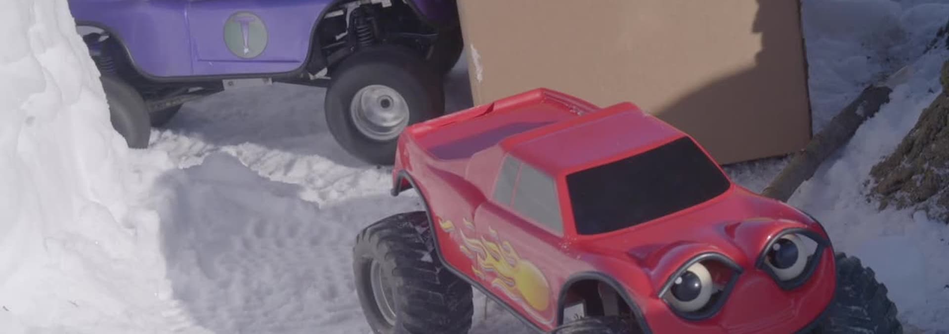 Zack has locked himself out of his snow fort, because there’s no door. He decides to dig through the snow and make an arch to drive in.
