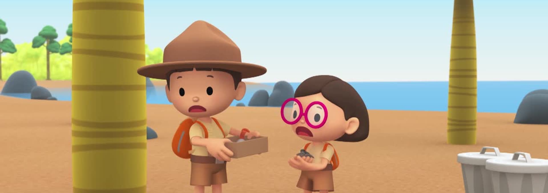 A fun game of table tennis leads to the surprise discovery of a baby sea turtle and some sea turtle eggs! Can the Junior Rangers return the baby sea turtle and eggs to the beach while keeping them safe from hungry raccoons?