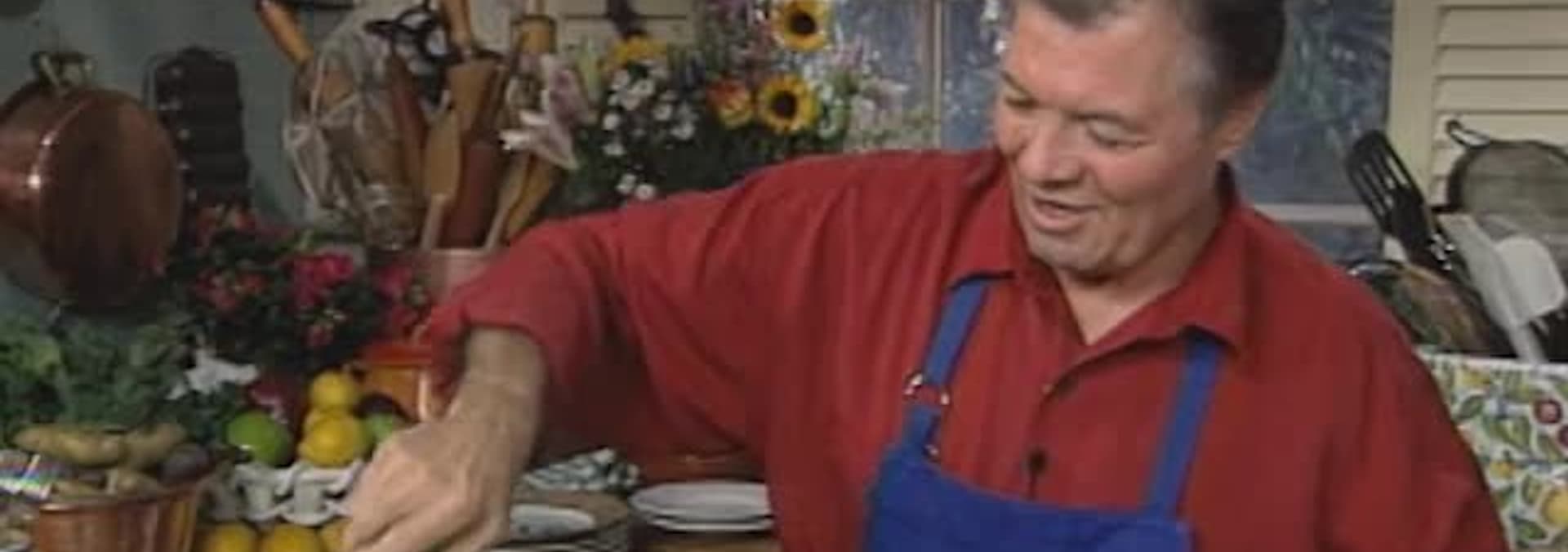 Four classic soups made from scratch in Julia’s kitchen: aromatic steaming hot French Onion Soup; Vichyssoise, or chilled Leek and Potato soup, as well as an original variation on the theme using watercress; and a hearty Mediterranean fish stew with an authentic rouille. And, because no show about would be complete without Chicken soup, we are presented chicken & noodle and chicken & rice soups.