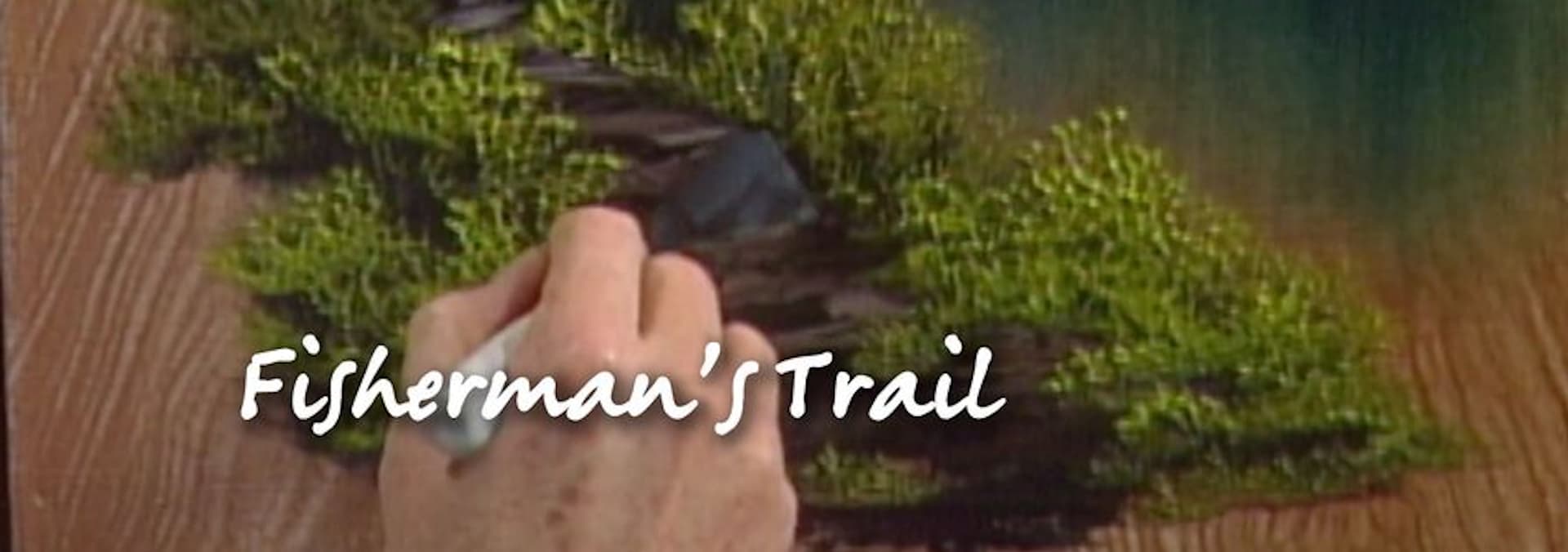 Fantastic faux woodgrain! Hike into the wilderness with Bob Ross and discover a well worn path leading back to his favorite fishing spot.