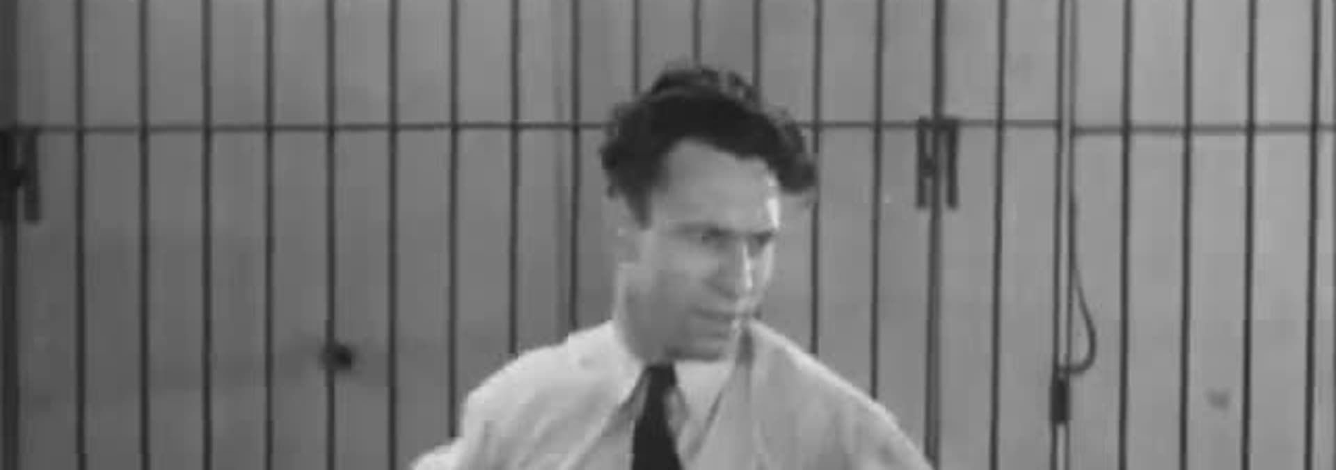 A Bat-man cuts the rope on which Clyde is swinging to freedom.