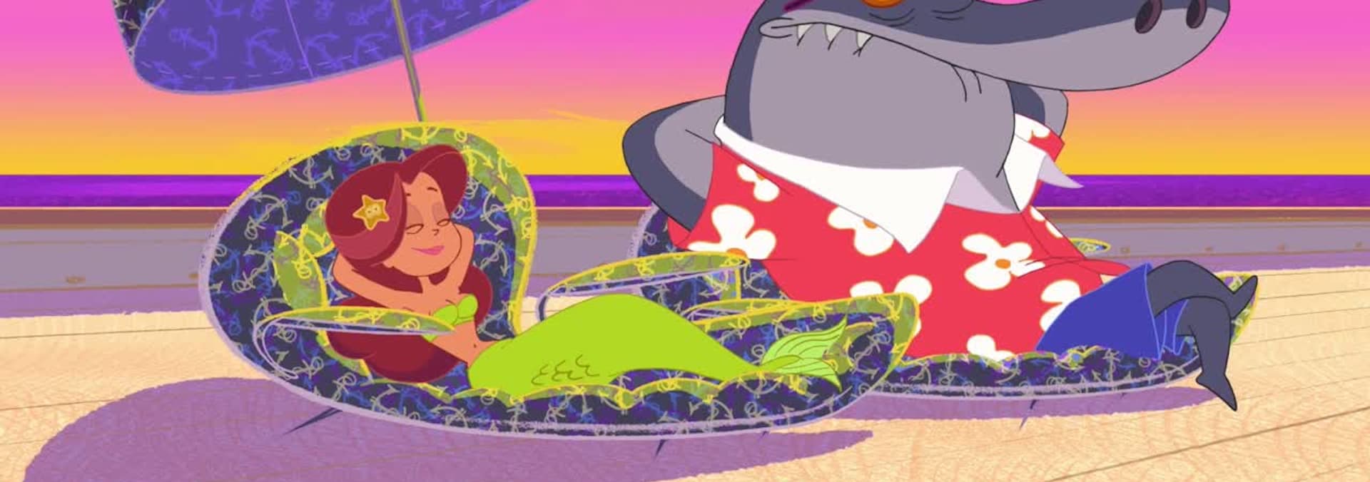 The mermaid dreams of being a stewardess. Sharko hijacks a seaplane and showing off, cruises in to pick up his honey. He does a whole series of cool aerial tricks in order to impress her... | Marina finds herself caught in the old pool at the end of the island. While trying to save her, Sharko gets an electric shock, which temporarily deprives him of the use of his fins. Zig takes advantage of the situation to try and catch Marina... | A Human Being fishes up the mermaid... and takes her to an aquatic zoo! At first, Marina is delighted to discover the world of humans, but she soon gets bored. Sharko and Zig have to join forces to free Marina and bring her back home...