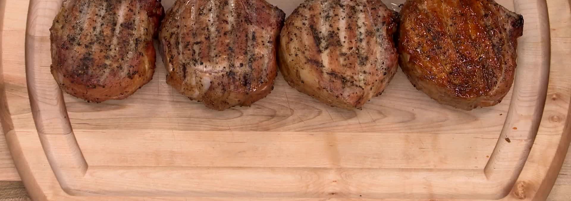 Ashley shows Bridget how to tackle Texas-sized, Thick Cut Smoked Pork Chops. Then, Adam reveals his pick for dry measuring cups. Finally, Julia reveals the secret to achieving the perfect Backyard Barbecue Beans.