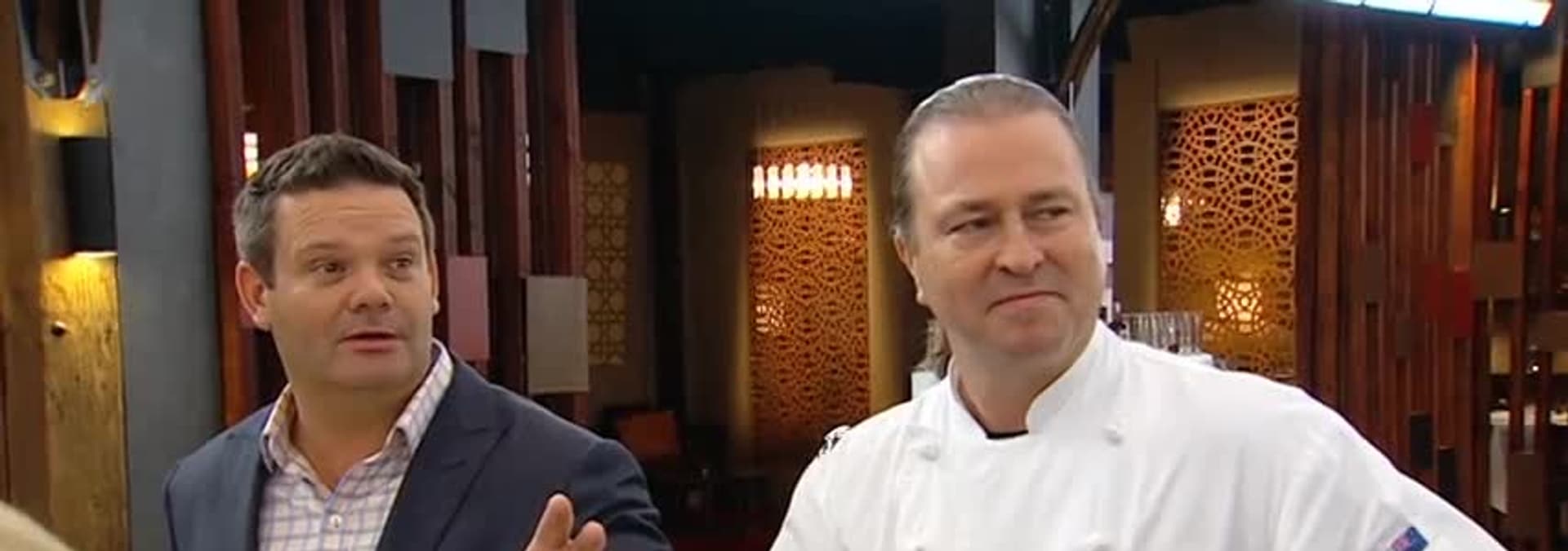 In pairs the contestants had to cook 8 courses chosen from Neil Perry's first class Qantas menu.