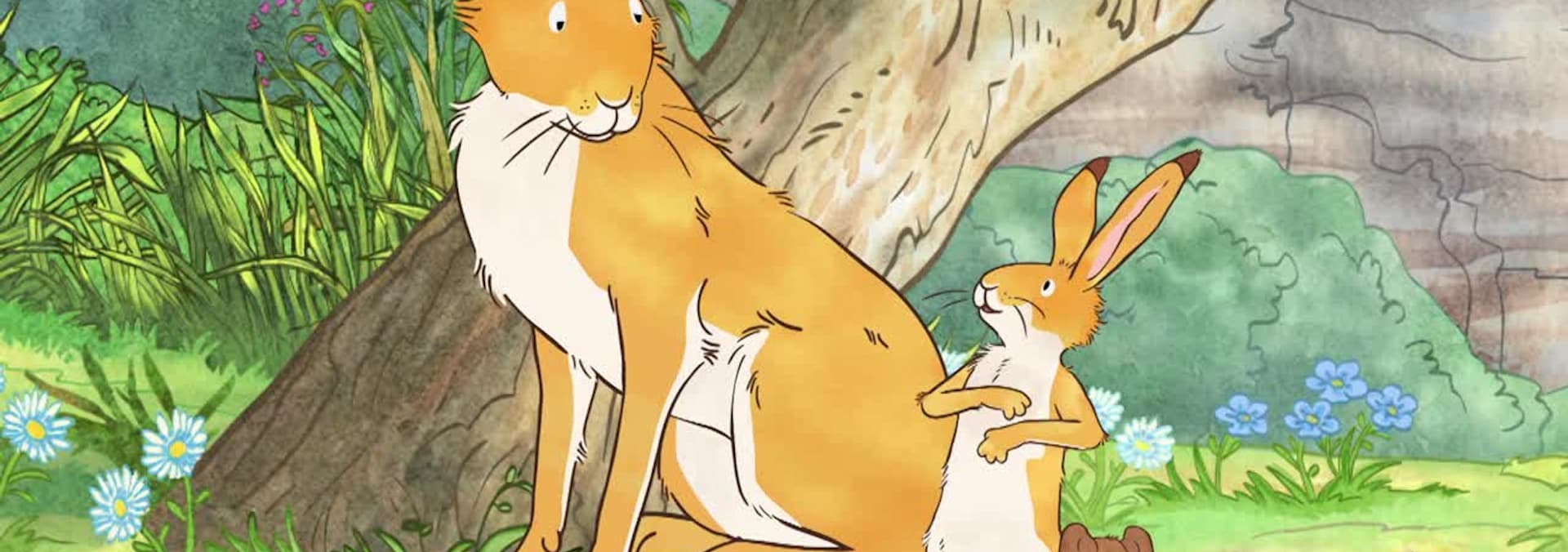 After Big Nutbrown Hare shows Little Nutbrown Hare a special place where his voice echoes, he and Little Field Mouse play a tricky game of 'Try to find me' with Little Redwood Fox and Little Grey Squirrel. Themes: discovery, inventing new games.