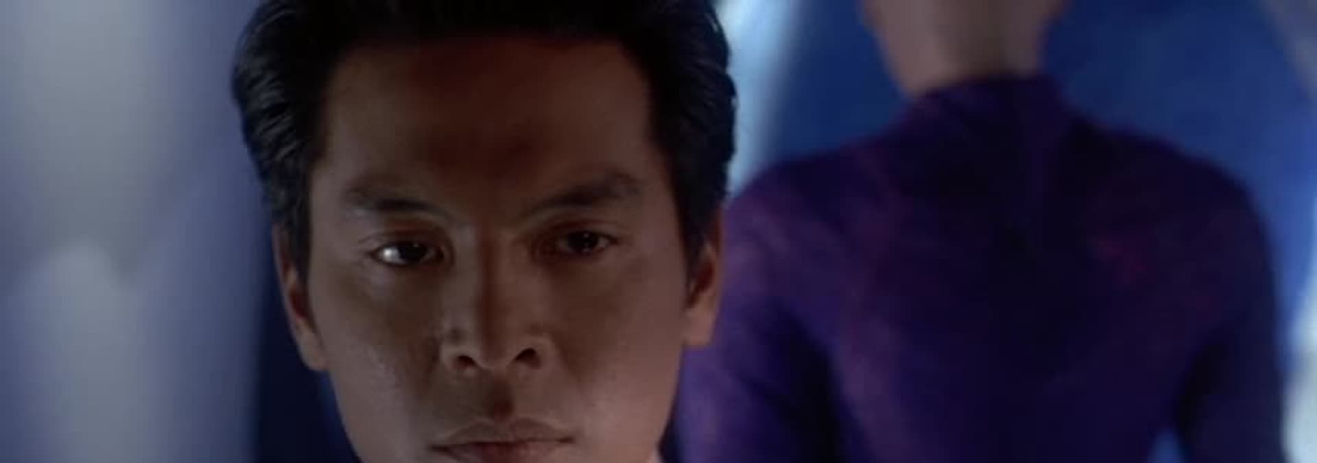 Liam (Robert Leeshock) attempts to rescue Lili (Lisa Howard) who is being held hostage by an escaped Jaridian (Andrew Jackson) aboard an abandoned Kimeran vessel.
