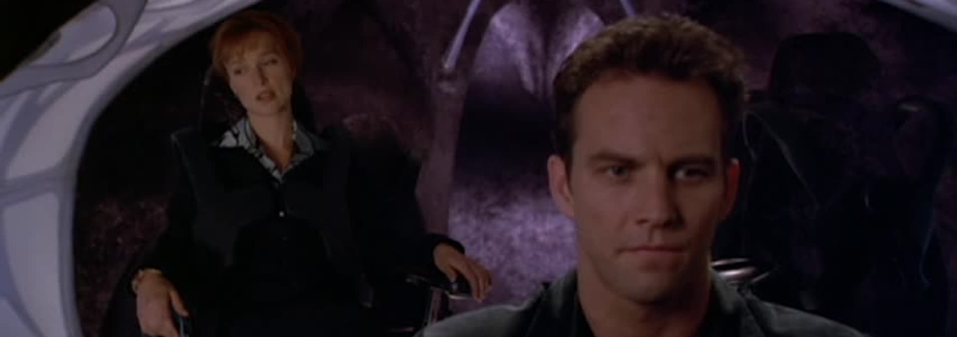 Augur (Richard Chevolleau) unwittingly puts Da'an's (Leni Parker) life at risk when he replaces him in the Taelon Commonality, causing Da'an to regress into a primitive monster the Synod wants to kill.