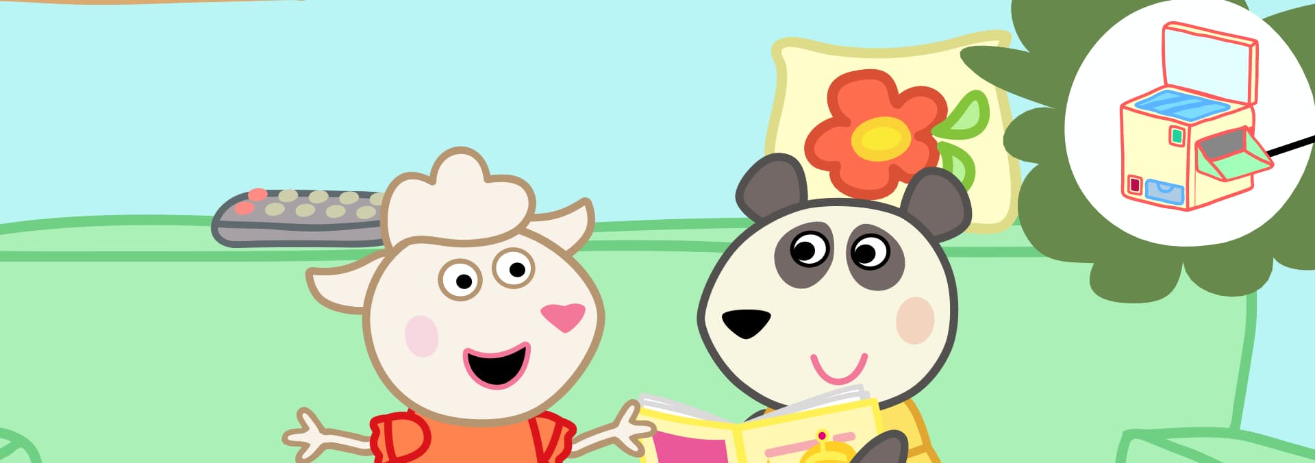 Once Panda and Dolly were reading a book. Dolly saw a beautiful picture in a book and wanted to photocopy it. The girls pressed buttons, but the copier didn't work. The Lamb entered the room. He saw that the copier was not connected to electricity. He plugged the wire into the socket. Immediately, the copier started working and several copied pictures flew out of it at once.