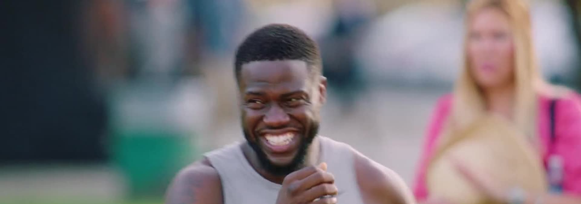 Kevin Hart and actor Scott Eastwood test their athleticism against the elite athletes, LA Rams.