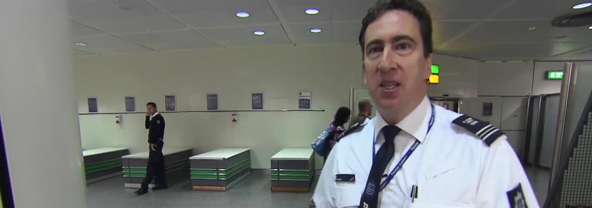At Gatwick, a man arriving from Port of Spain is discovered carrying 2.5 kilos of cocaine in his bag. A man arriving from Dubai is throwing a fit.