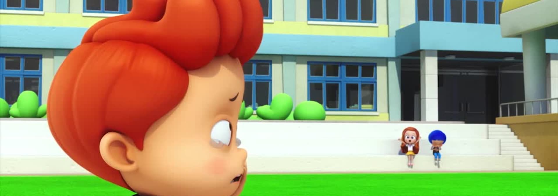 The Busters sneak away to visit the boy at school. During their adventure, they encounter a nasty hog on the soccer field.