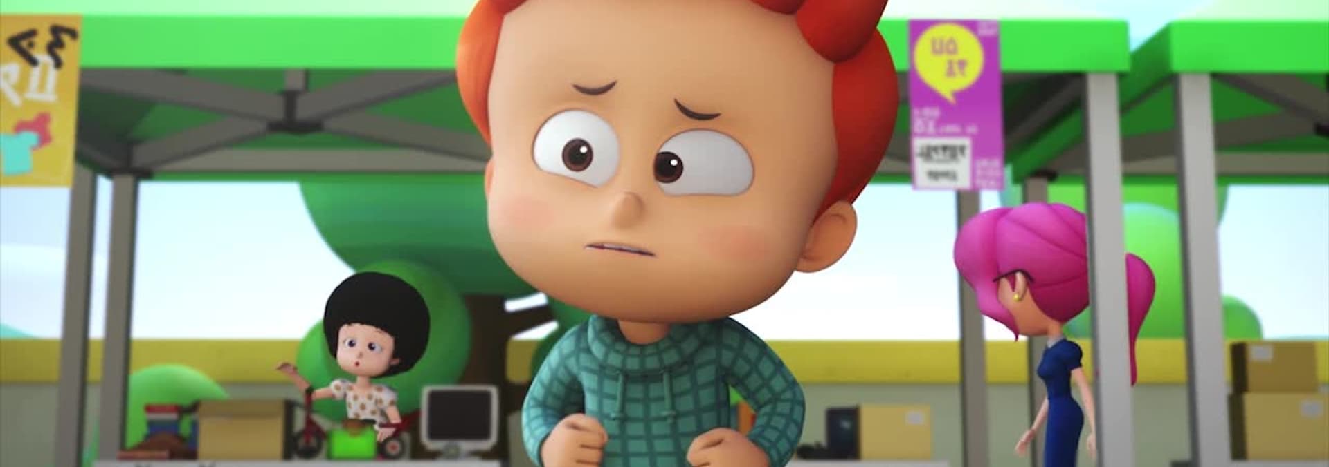 The Busters sneak away to visit the boy at school. During their adventure, they encounter a nasty hog on the soccer field.