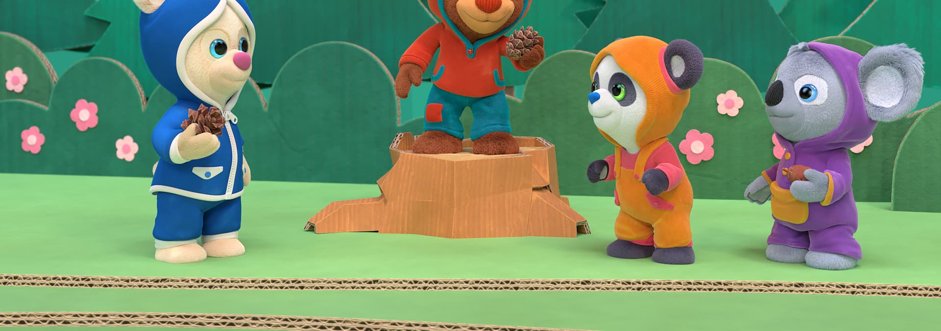 Boomer has fun juggling pinecones, but finds greater joy in sharing the pinecones with each of his friends.