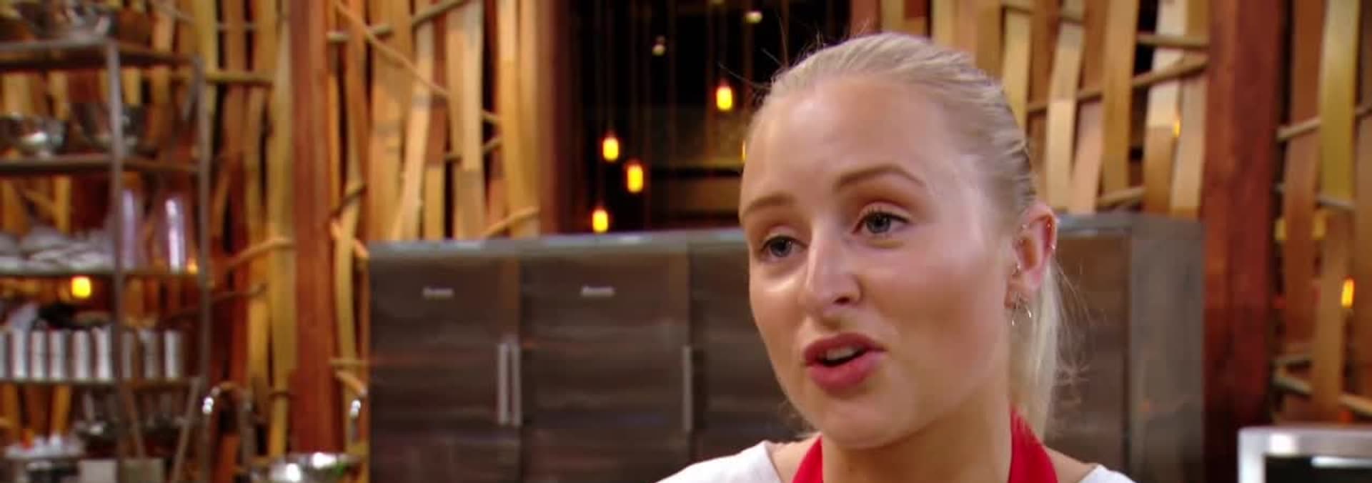 The contestants arrive at the MasterChef kitchen excited to see what’s in store.Running into the kitchen they see the layoutof the roomand know they’re in for a servicechallenge.