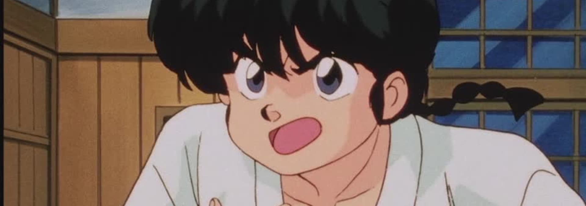 Stuck in the middle of a fight between Ranma and Ryoga, Akane's long hair is chopped off by Ryoga's bandana sword.